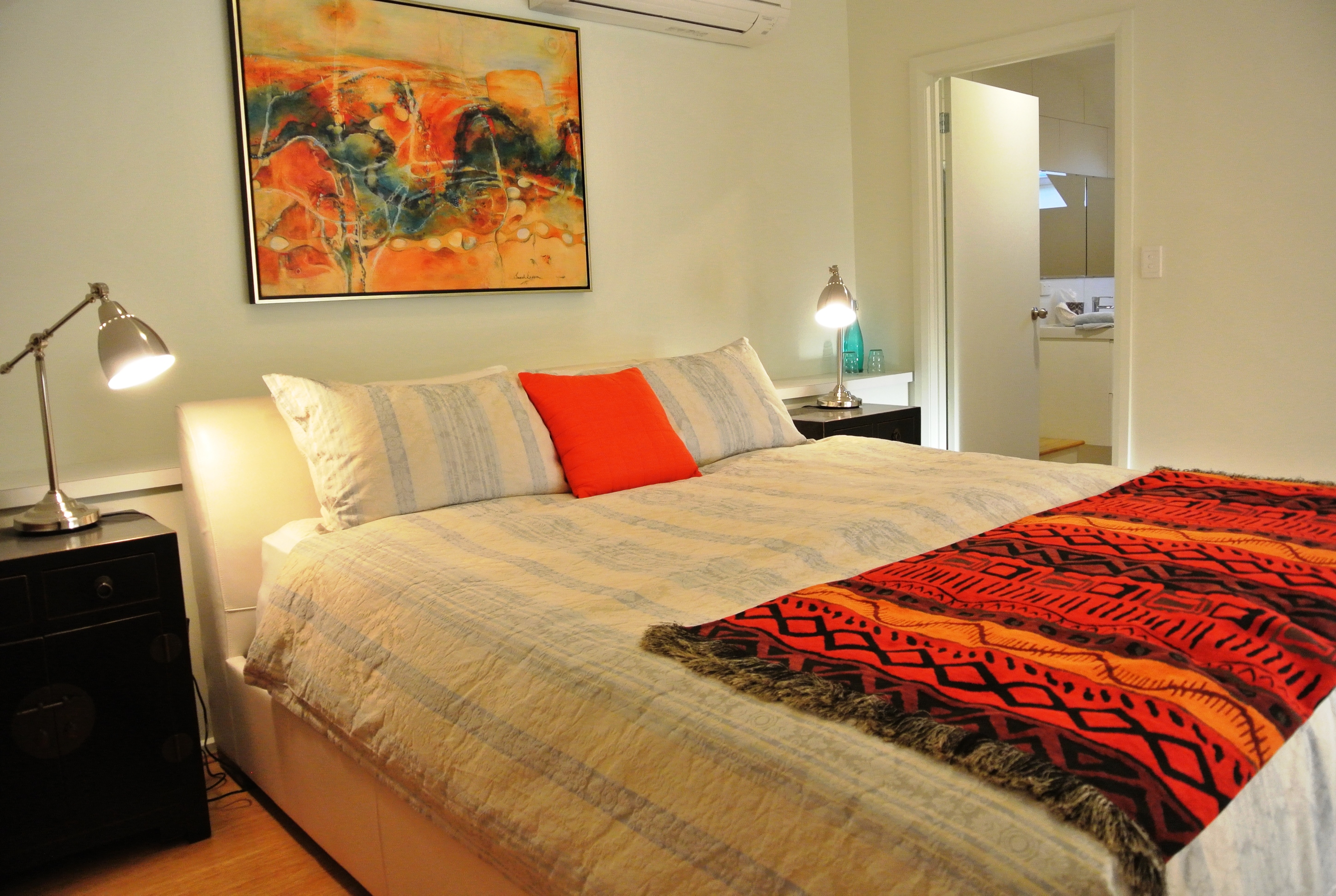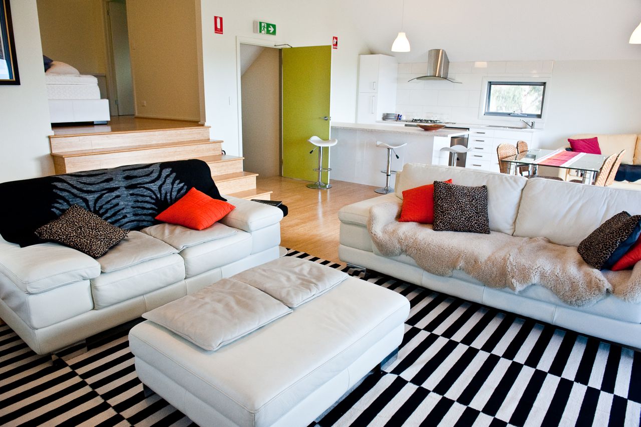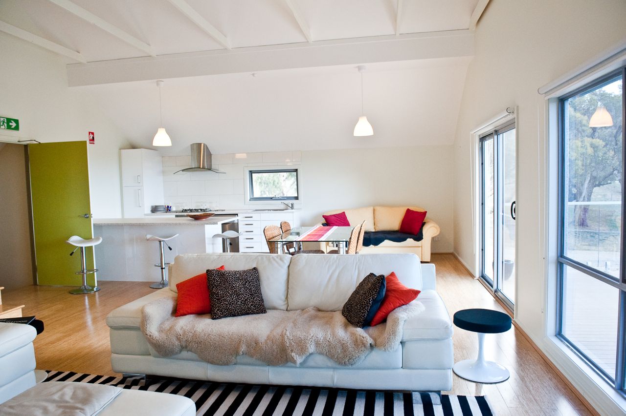 A Vine Romance is a romantic, luxurious retreat for relaxation & enjoyment. The spacious upstairs, split level, stylish apartment has a contemporary feel. Designed to take advantage of the view; you can snuggle in your supremely comfortable king bed gazing over the olive grove & vineyard to the long stretch of beautiful coast. The European-style bathroom invites pampering with generous shower, fluffy towels, handmade olive oil soap & body lotion. The well equipped kitchen has full oven, dishwasher & coffee machine.