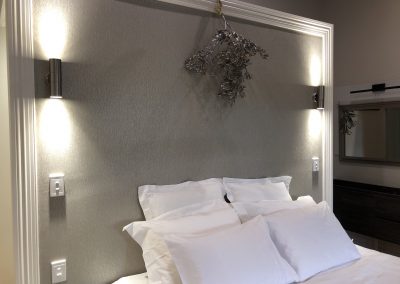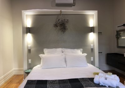 . . . facing the eastern veranda of The Farmhouse the Ivy Room, with Baltic pine floors, high ceilings, heating & cooling system, ceiling fans, ensuite bathroom & wall mounted TV has a King size bed, luxurious linens and an elegant feel – it’s just delicious!