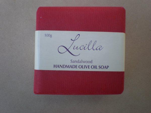 Lucilla olive oil soap with sandalwood fragrence. Spicy, distinctive and moisturising.